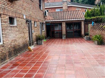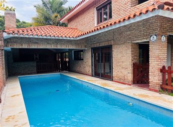 Fondo con piscina y barbacoa garage para 2 autos y lugar en el jardín para varios más.